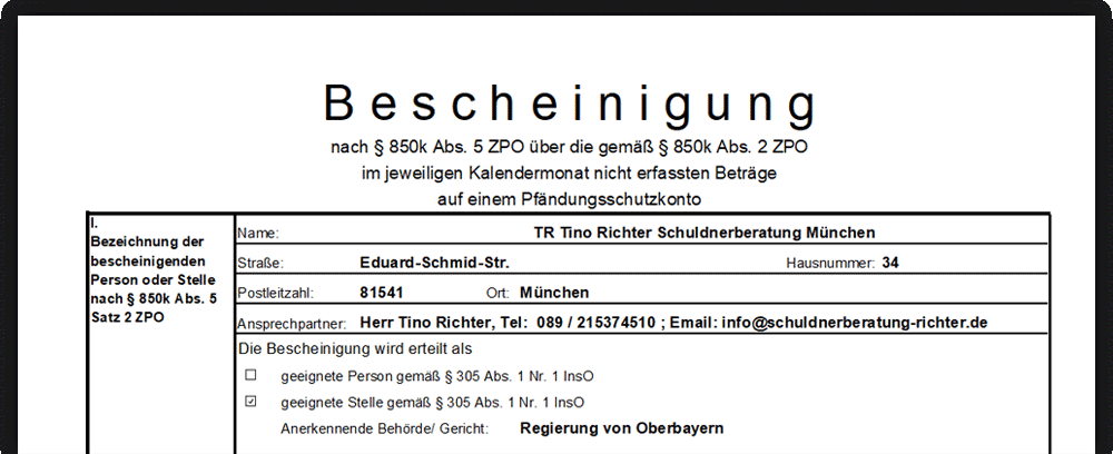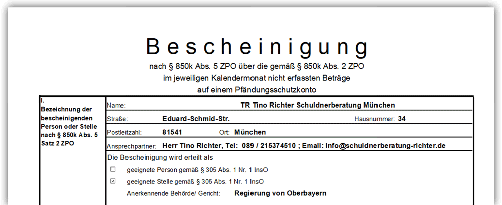 P-Konto Bescheinigung gemäß § 903 Abs. 1 ZPO